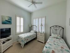 The master bedroom suite features a king-size bed and a walk-in shower, while the second bedroom offers two extra-long twin beds. Relax on the screened lanai and watch the fish jump in the water.