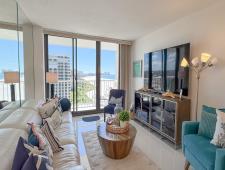 Experience the breathtaking view from this beautifully renovated 2-bedroom condo, boasting new tile flooring and a southern beach vista. The condo is fully furnished with a king bed in the master bedroom and a queen bunk bed in the guest room. Every room provides balcony access to take in the stunning scenery. Enjoy all the comforts of home, along with numerous amenities at the South Seas complex, including tennis, pickleball, shuffleboard, boat dock rentals, and a fitness room in the lobby.