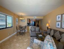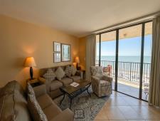 This condominium is ideally situated at just the right height to allow you to sit on the balcony and clearly hear the waves while watching dolphins swim by. It features all tiled floors, a king-sized bed in the master bedroom, and a queen plus a twin bed in the guest bedroom. The living room set is brand new. Unlike other condos, this one includes a full-sized washer and dryer. Once you stay here, you'll want to return every year.